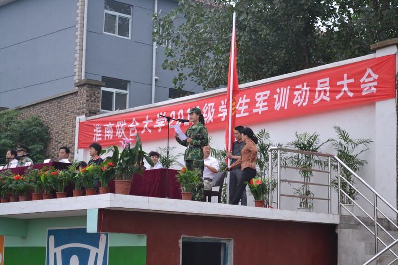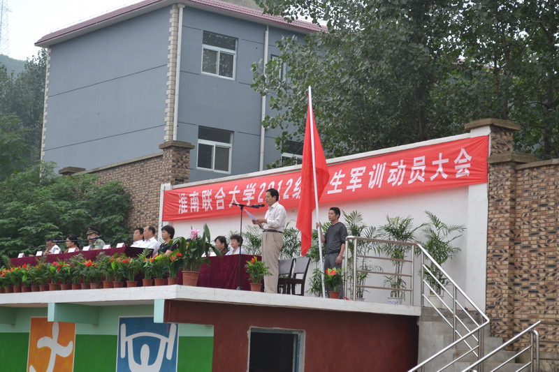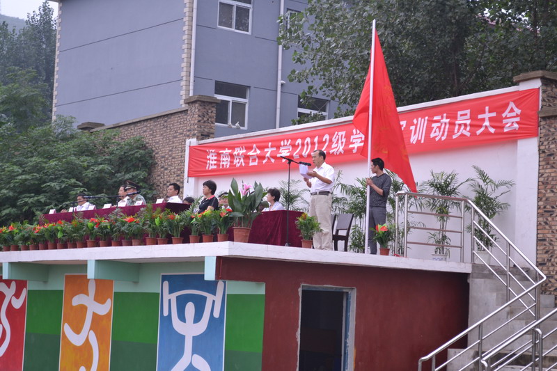 赵耀军校长在大会上致辞,并对新生在接下来的军训生活提出了要求与希望。校党委书记万继军向2012级参训学员授军训旗。我系新生代表全体受训学员发言。