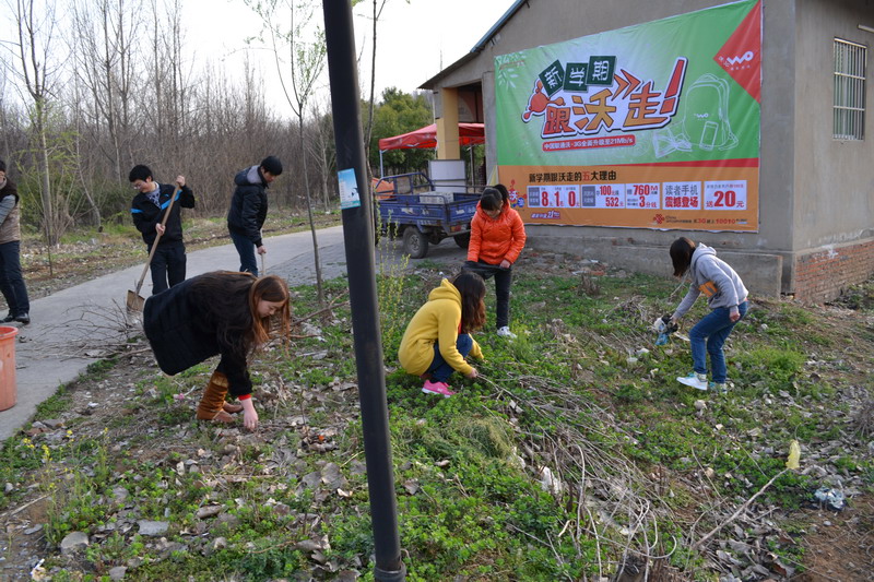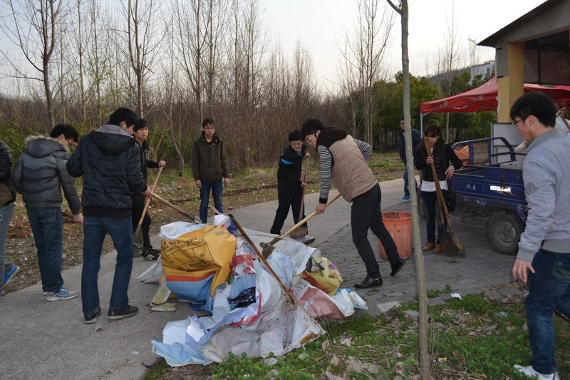 为积极响应校团委青年志愿者活动月及学校植树节相关活动安排的号召,3月13日,我系40余名同学在系书记的带领下,对服务经营房周围空地进行了大扫除活动。
