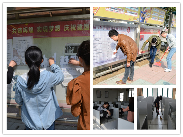 为给同学们营造一个清洁良好的学习和生活环境,志愿者在校园内进行擦拭宣传栏、清除小广告、清扫机房等保洁活动,延续历年来“卫生清洁”志愿服务的劳动乐趣和奉献的快乐。