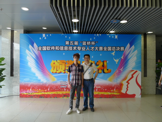 5月31日在北京举行的第五届“蓝桥杯”全国软件和信息技术专业人才大赛个人赛决赛的比赛中,我校参赛选手在张洪胜和靳言清两位老师的指导下再传捷报,计算机系12软件班朱蕾同学在高手如林的比赛中不畏强手,努力拼搏,荣获JAVA高职高专组决赛二等奖。