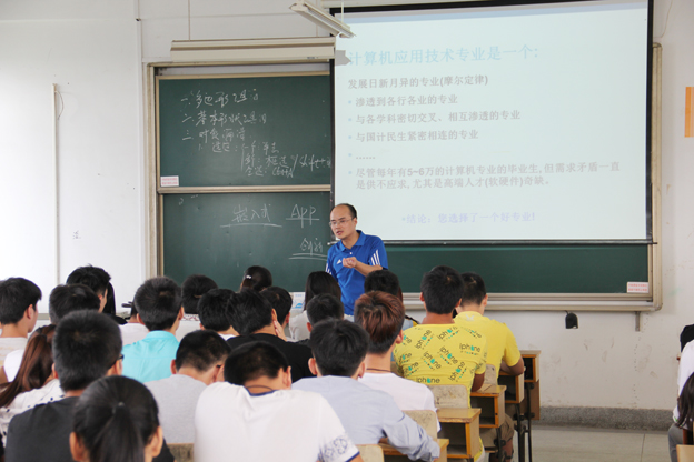 9月14日下午,我系在西教学楼按专业分五个会场对2015级新生开展了专业认知教育。计算机应用技术、计算机网络技术、软件技术、动漫设计与制作、物联网应用技术五个专业分别有专业骨干教师为新生介绍专业,各专业班主任、辅导员和学生参加了教育活动。