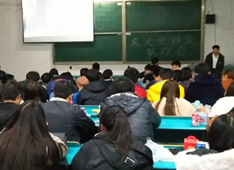 为了迎接即将到来的元旦,12月22日晚上我系16级应用技术专业、16级动漫设计与制造专业、16级网络技术专业在西区120教室举行“庆元旦师生联欢会”。通过这次活动加强了班级的凝聚力、丰富了大学生的校园生活,进一步促进了同学们和辅导员、班主任的交流,同时又表达了同学们对学校、对大学美好时代的热爱之情。