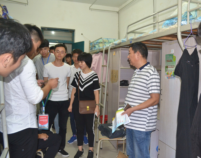 每天下午六点,在完成了当天的新生报到工作后,辛苦了一天的辅导员、班主任们仍不休息,带着学干们一起第一时间深入走访新生宿舍,看望顺利报到、入住宿舍的新同学。每进一间宿舍,辅导员都仔细询问新生的各项情况,认真查看宿舍里的各项设施是否完备,嘱托同学们有困难、有问题立刻向辅导员、班主任反应,并向同学们做了安全法制教育,把与交通安全、突发事件、秋季传染病、火电险、偷盗、抢劫、诈骗、非法传销等相关安全知识告知学生。老师和学长们用自己的满腔热忱和真切关爱,让刚踏入大学校园的新生们感受到了不一样的温暖。