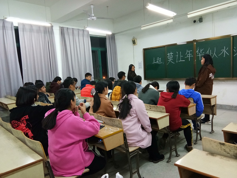 近日,17级计算机系物联网应用技术与移动互联班级,在西区教学楼514教室举行了关于“莫让年华似水流”的主题班会。