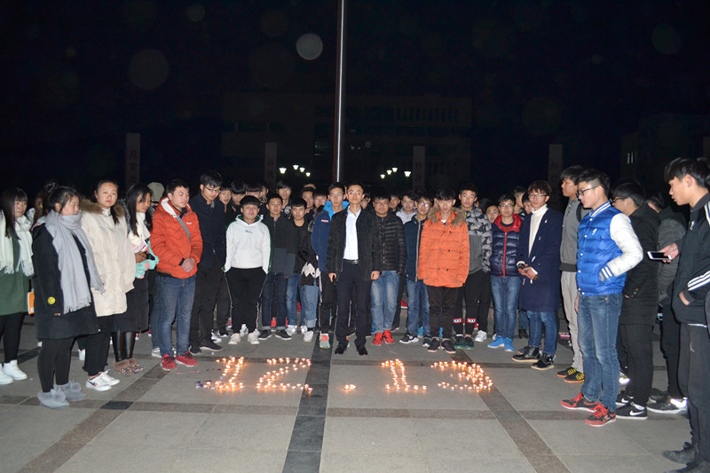 傍晚时分,同学们怀着悲痛的心情来到国旗广场,用蜡烛摆出了一个大大的“12.13”,以表示对不幸遇难同胞的缅怀。在激昂的国歌声中,全体师生面向国旗集体行注目礼、肃立默哀,用无声的语言表达对遇难同胞的沉痛哀思。计算机系辅导员作了主题为“勿忘国耻,振兴中华”的国旗下讲话,介绍南京大屠杀的历史真相,让学生们牢记历史,勿忘国耻,并号召同学们发奋学习,为祖国的繁荣富强贡献力量。