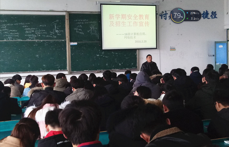 新学期伊始,为了提高学生安全意识,同时也为做好招生宣传工作,16级网络技术和计算机应用技术班于2月28日下午在东区120教室召开了“新学期安全教育及招生工作宣传”主题班会,班主任王勇主持,全体学生参加了此次班会。