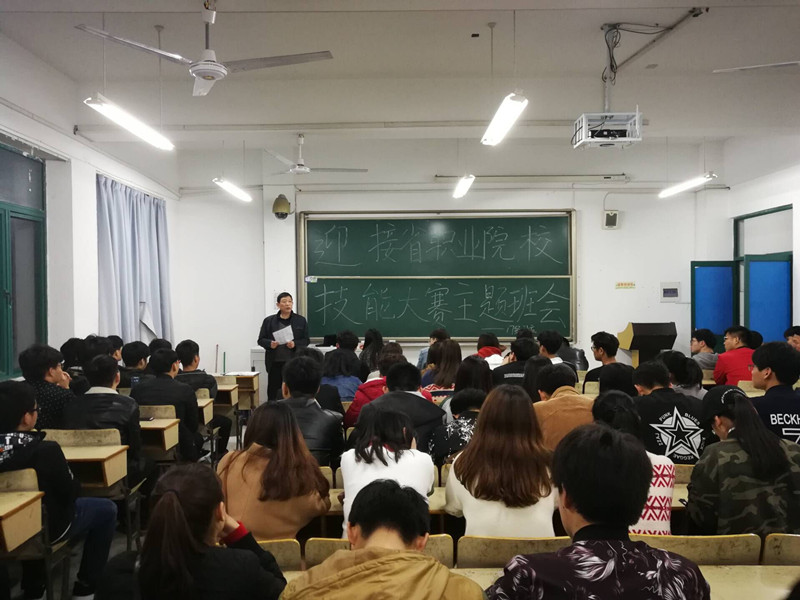 2018年安徽省职业院校技能大赛高职组“工程测量”赛项于3月17至18日在我校举行,为维持好整个校园特别是赛场秩序,展现我校风采,17级计算机应用技术于3月15日晚在西区506教室召开了“迎接省职业院校技能大赛”主题班会,班主任王勇老师主持。