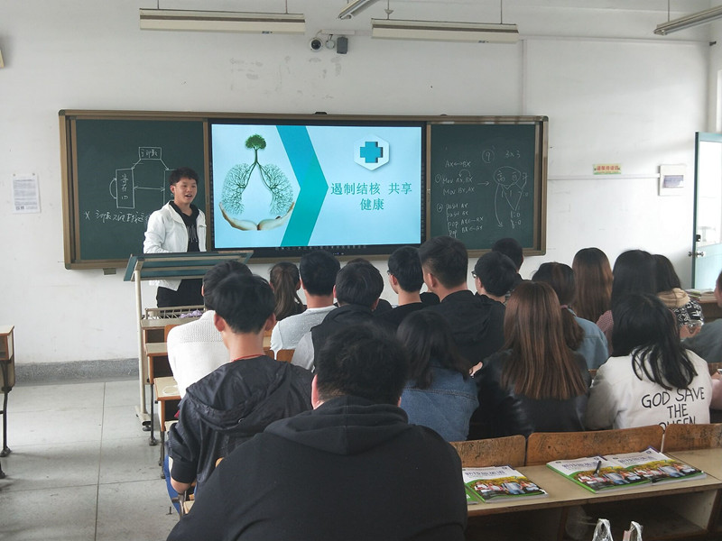 主题班会上,通过PPT展示的方式,让同学们充分了解肺结核病的症状和传播途径,以及结核病的危害、预防和治疗方法等相关知识,增强了同学们防范肺结核病的意识,从而达到了解预防及宣传的目的。