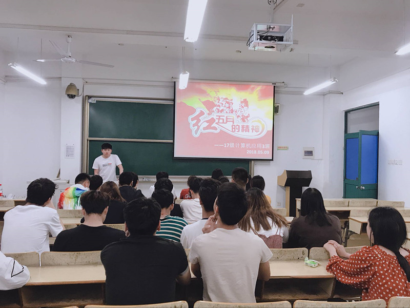 为宣传爱国主义,近日,17级计算机应用技术三班在西区506教室召开了主题为“红色五月”的主题班会。