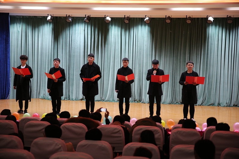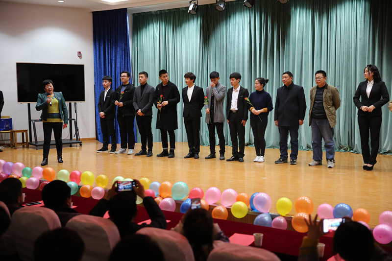 演出的最后,16级学生干部每人用一句话诉说对母校、老师和同学们的深厚感情。毕业班班主任王勇、许康老师上台给即将离校的的学生们至毕业致辞,肯定了他们三年的大学生活对他们的成长成才的重要意义。旷书记也上台对新老生送上了殷切寄语,并深情地对毕业生们说:“我和我的伙伴们会一直在这里等你回来。祝你们前程似锦、一帆风顺!”