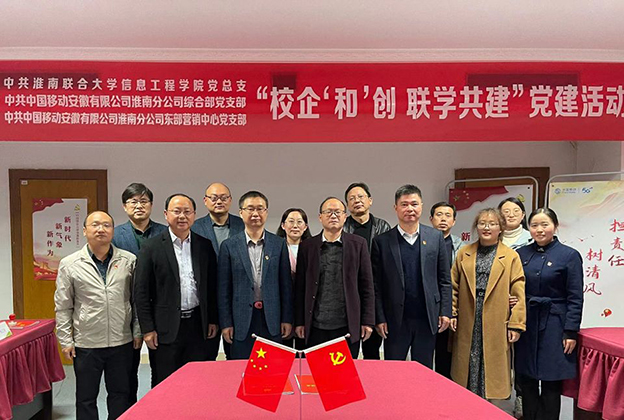 11月17日,信息工程学院党总支与淮南移动东部营销中心党支部、综合党支部开展“校企‘和’创联学共建”党建主题活动。副校长罗鸿,淮南移动分公司党委委员、副总经理、纪委书记陈伟,学院党总支书记方刚,党总支副书记、院长方厚加及学院党总支成员参加活动。