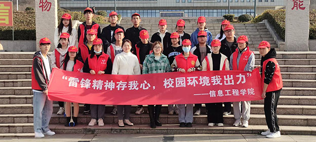 为大力弘扬雷锋精神和“奉献、友爱、互助、进步”的志愿服务精神,筑牢抗击新冠肺炎的“防火墙”,创造文明整洁的校园环境,信息工程学院于3月4日下午在学校东教学楼附近开展了“雷锋精神存我心校园环境我出力”志愿清扫活动。信息工程学院团总支老师、“青柠”志愿者、入党积极分子和学生会干部参加了此次活动。