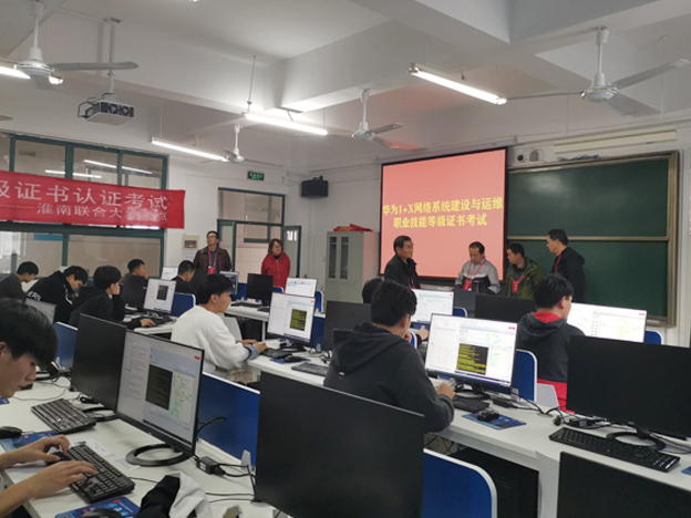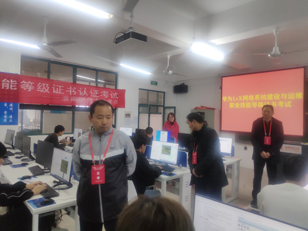 为了提高学生实践动手能力,检验教育教学效果,赛证融通,推进学分银行。信息工程学院积极筹备,通过前期优选,校企合作企业讲师和专业教师悉心辅导,学生认真学习,11月26日下午,在西教学楼网络技术实训室,完成了30多名学生华为“1+X”网络系统建设与运维职业技能等级证书认证考核工作。校长李辉,副校长白存良,办公室、实训中心和信息工程学院相关负责同志到场巡查督导。