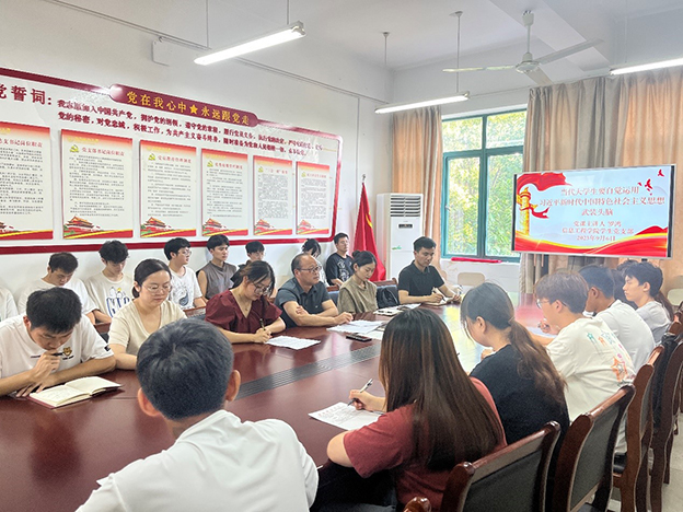 为更好开展学习贯彻习近平新时代中国特色社会主义思想主题教育,坚持不懈用习近平新时代中国特色社会主义思想凝心铸魂,切实加强党支部的思想建设,9月6日下午,副校长罗鸿以“当代大学生要自觉运用习近平新时代中国特色社会主义思想武装头脑”为主题,为信息工程学院学生支部师生党员上了一堂生动的专题党课。